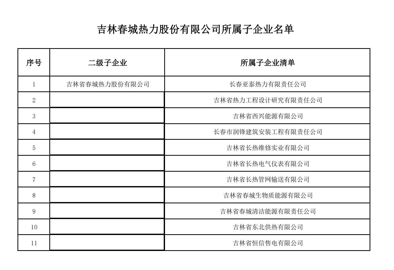 吉林省春城熱力股份有限公司所屬子企業(yè)名單