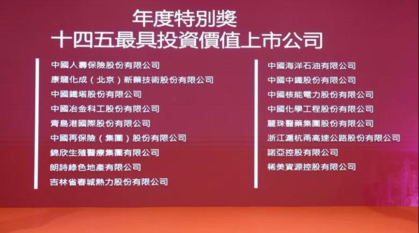 中國證券“金紫荊”獎是針對中國內(nèi)地和香港地區(qū)所有上市公司及其高管進行對比和綜合評測,推薦出年度特色突出、成就顯著的上市公司和管理者,該獎項規(guī)模大、層次高、公信力強,已成為海內(nèi)外觀測中國資本市場及上市公司的風向標,素有上市公司“奧斯卡”的美譽。